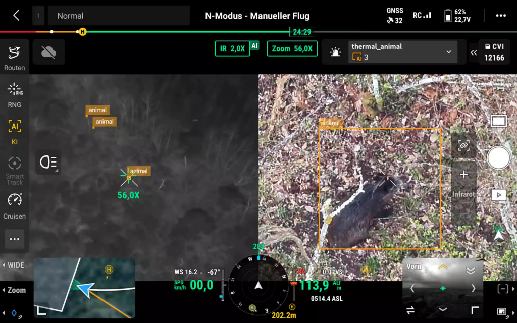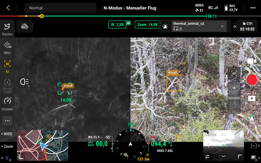 Neben der klassischen Rehkitzrettung eignet sich die Tiererkennungs-KI auch hervorragend für Wildzählungen, Revieranalysen und professionelle Monitoring-Aufgaben. Sie reduziert den Stress für Mensch und Tier und sorgt gleichzeitig für eine deutlich höhere Trefferquote.